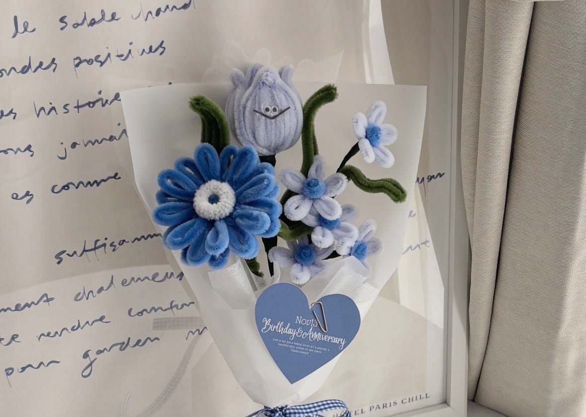 ブルー系でバランス良くまとめたmini bouquetです♡ チューリップは顔ありorなしをオプションよりお選びいただけます。 【配送について】 ご注文確定から3週間以内に納品となります。 通常便での配送日の指定は3週間後から指定可能です。 ご予約より3週間以内にご希望の方はお急ぎ仕上げ(+800円)となりますので商品ページのオプションよりお急ぎ仕上げのご選択をお願いいたします。 また、ご注文日含め5日以内に納品希望の方は、 お届け可能か確認が必要となりますので、必ず事前にお問い合わせお願いします。 ⇨5日以内納品は事前連絡無しで備考欄のみに日時指定希望を記載いただいても承れない場合もございますのでご了承くださいませ。 【ご注意事項】 ※ご注文後のキャンセルはお受けできません ※モール(針金)を使用した商品となりますので、針金が細部に出ている場合がございます。 お取り扱いにはご注意くださいませ。 【ラッピングについて】 ラッピングは無料となっております。 メッセージカードご希望の場合はオプションよりご選択お願いします。 また、カスタマイズカード選択の場合は備考欄にご希望のメッセージ内容をご記載くださいませ。