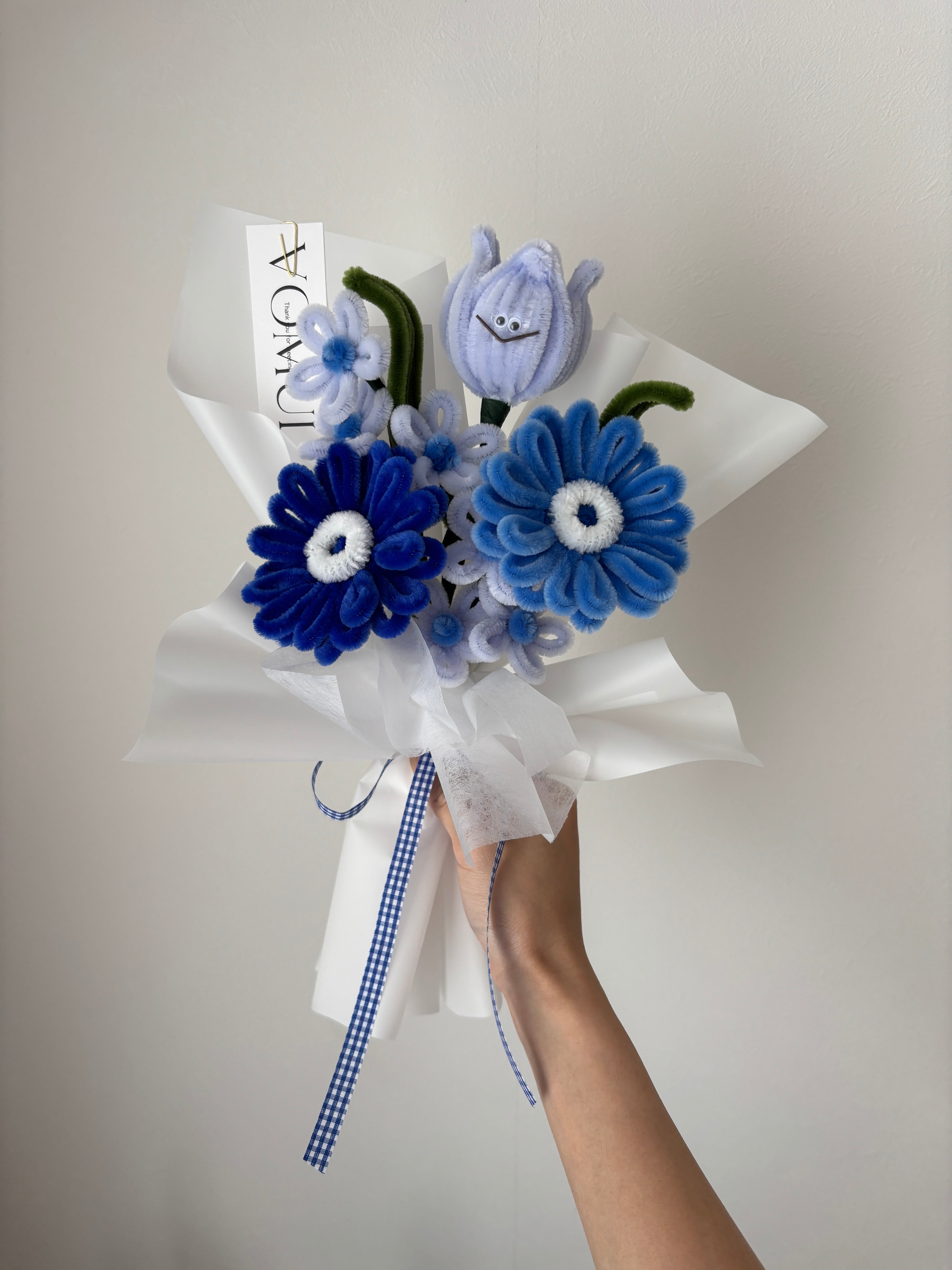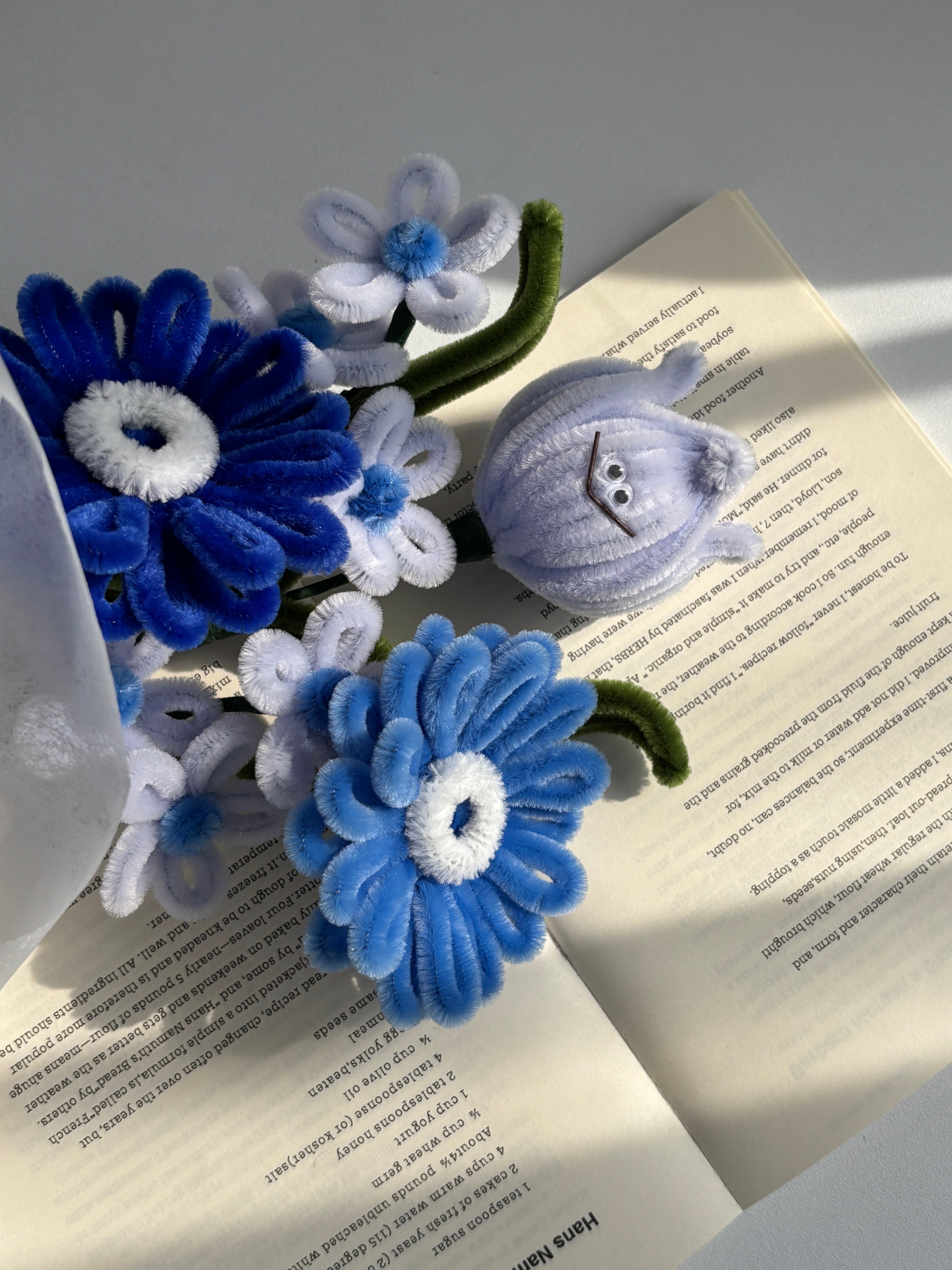 お花のお色味 イエロー系/ブルー系、チューリップの顔なし/顔つきをオプションにて選択可能です。