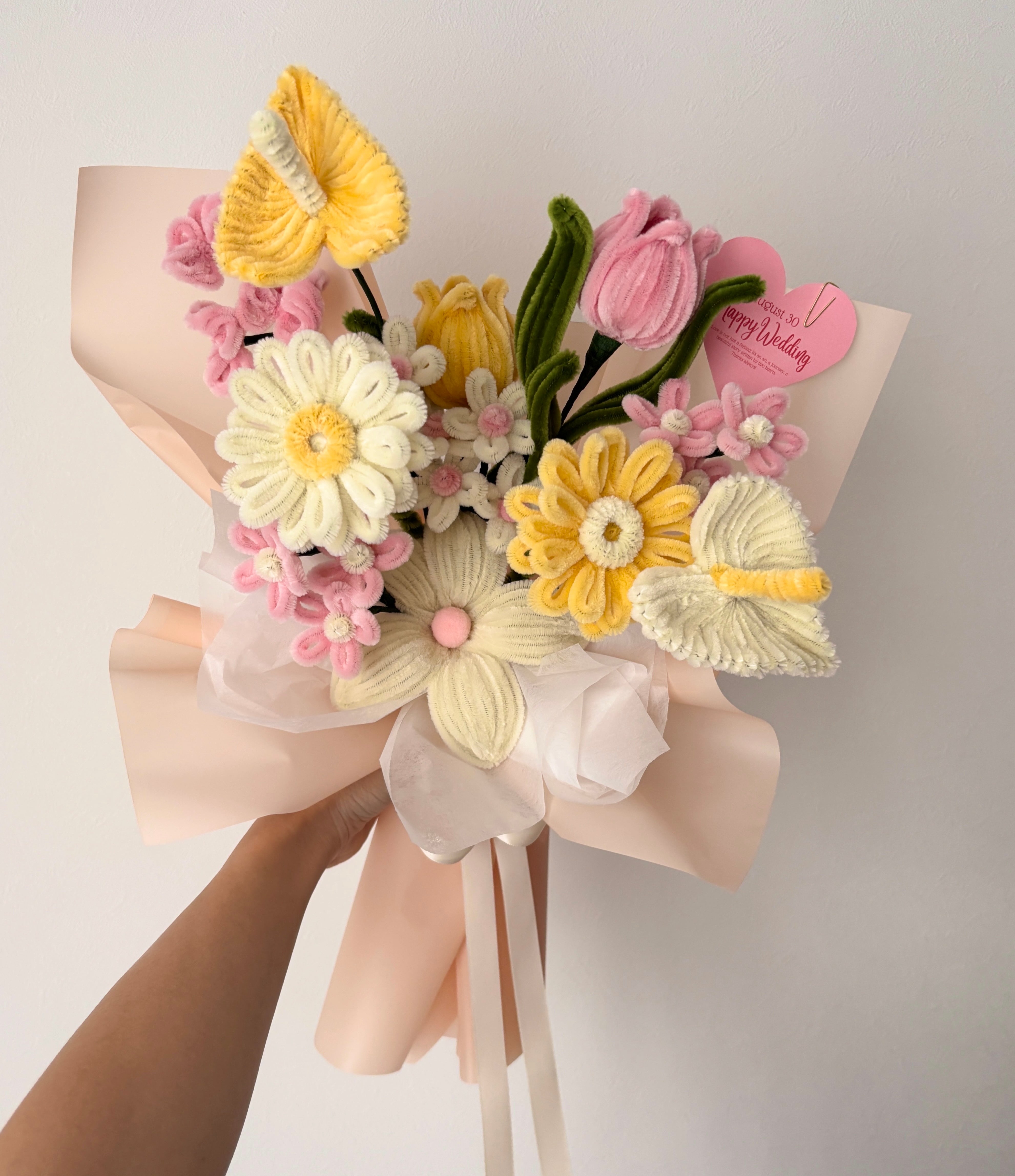 Airy Spread bouquet pink×yellow【モールフラワー11本】