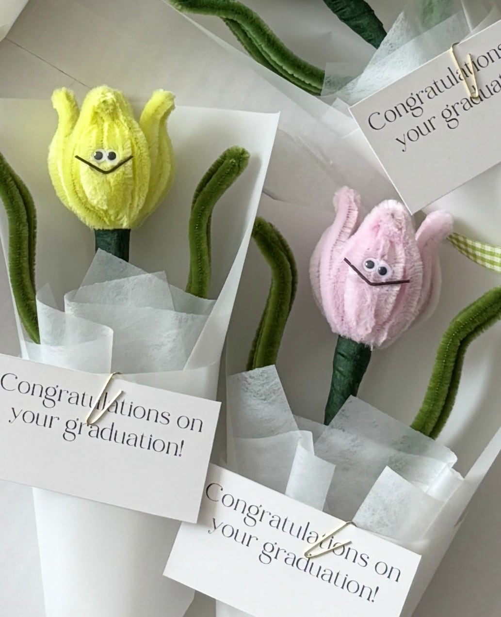 vomulオリジナルスマイルチューリップ【1本】に卒業シーズン限定で卒業帽がついたタイプとなります♡