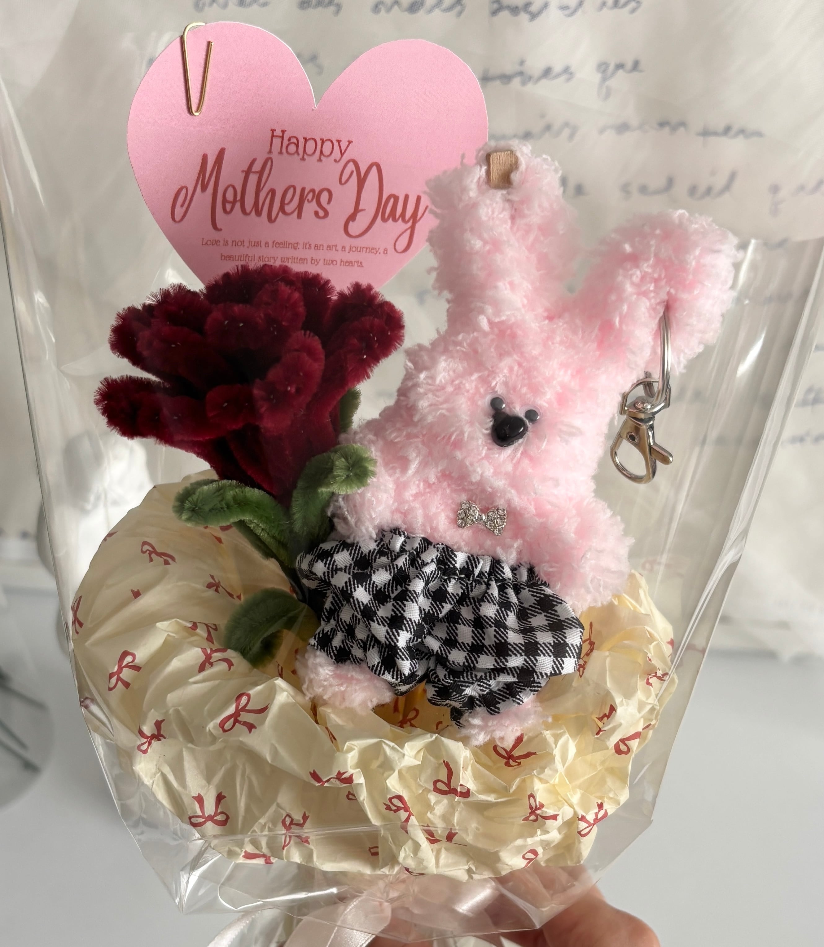 母の日vomu doll bouquet【モールフラワー1本+うさぎモールドール】