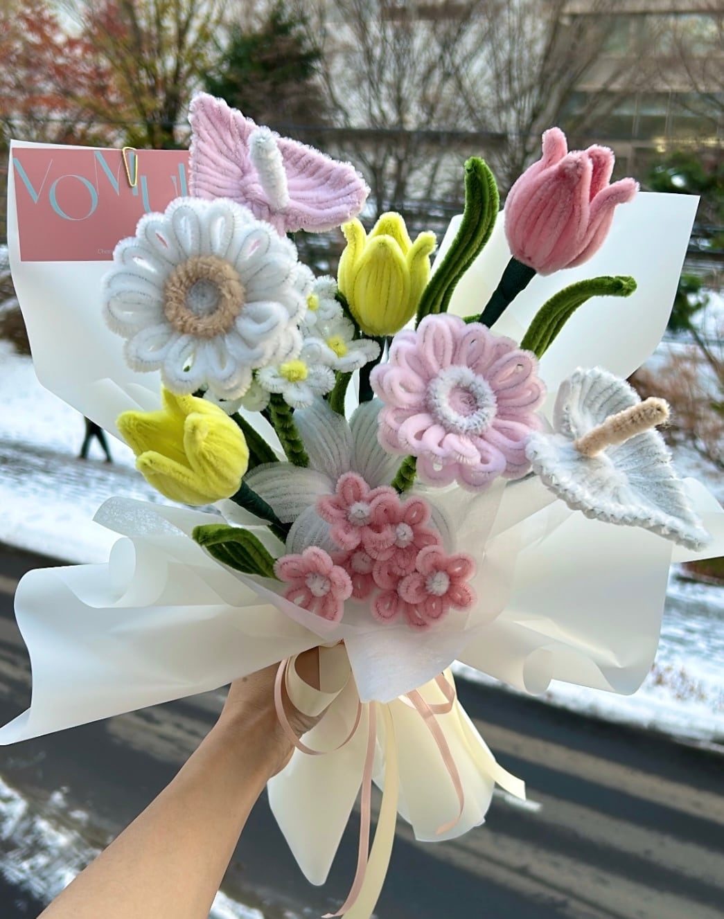 モールフラワー10本を花束にしたタイプとなります。(ラッピング込み)